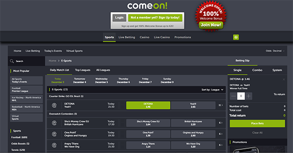 ComeOn! esports betting platform